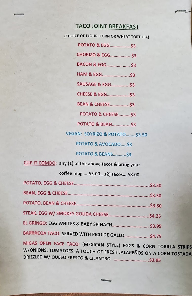 Not to be overlooked is Taco Joint's casual atmosphere and friendly service, making it the perfect spot for a quick bite or leisurely meal. Whether you’re grabbing a cold brew to enjoy with your tacos or savoring a migas taco after a stroll by Town Lake, Taco Joint truly sets the bar for authentic, flavorful tacos in Austin.